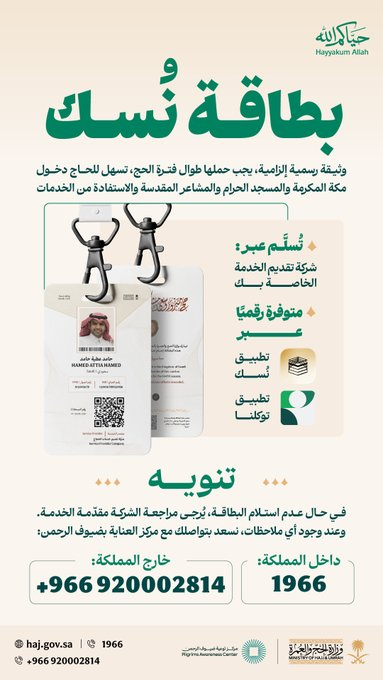 بطاقة نسك والدعم الكامل لضيوف الرحمن