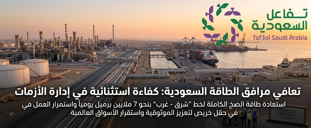 أعلنت وزارة الطاقة السعودية اليوم عن نجاح جهود تعافي مرافق الطاقة التي تأثرت مؤخراً، مؤكدة استعادة طاقة الضخ الكاملة عبر خط أنابيب شرق – غرب، لتعود إلى مستوياتها الطبيعية البالغة نحو 7 ملايين برميل يومياً في وقت قياسي.