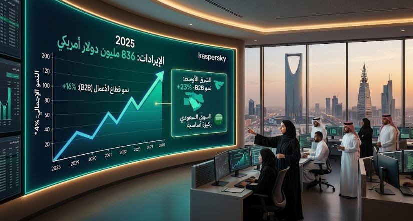 كشفت شركة كاسبرسكي عن نتائج أعمالها السنوية لعام 2025، محققةً نمواً في المبيعات بنسبة 4% على أساس سنوي، لتصل إيراداتها إلى قرابة 836 مليون دولار أمريكي.