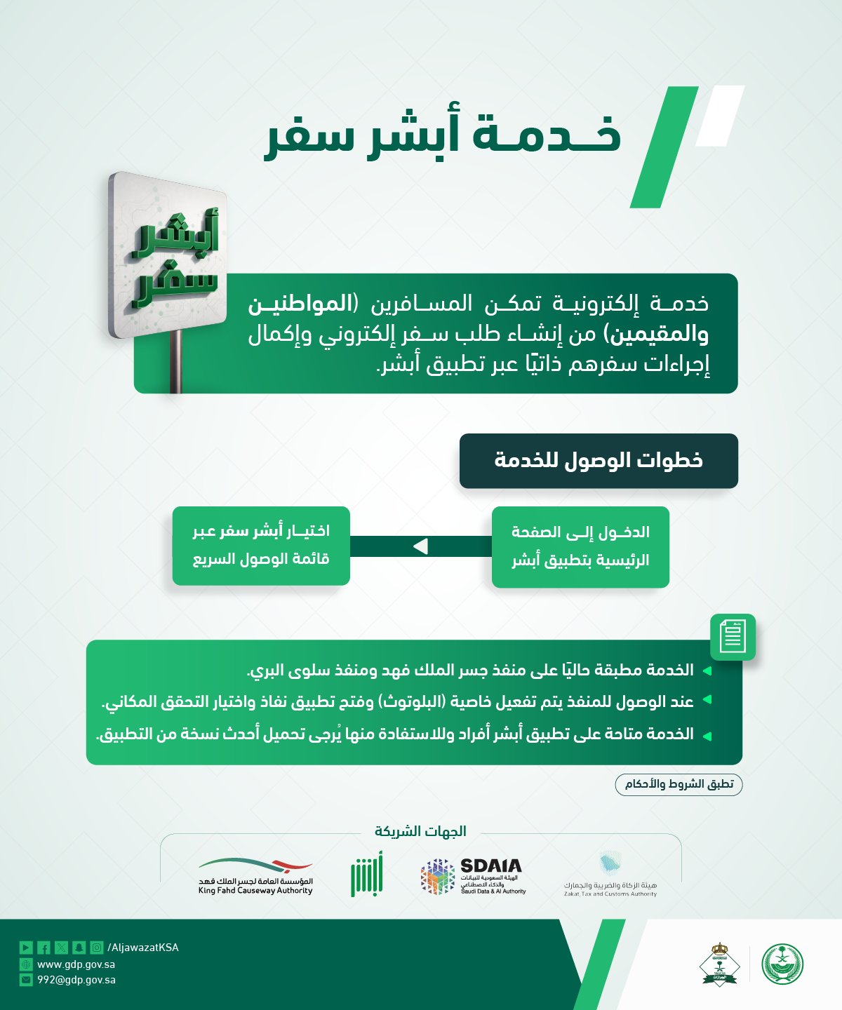 تفعيل خدمة أبشر سفر عند الوصول للمنفذ البري