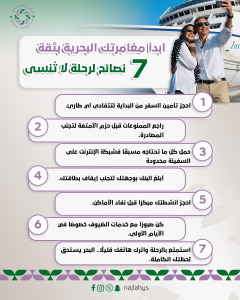 ويهدف الإنفوجراف إلى تشجيع المسافرين على خوض تجربة الإبحار بثقة واستمتاع، مع مراعاة التفاصيل الصغيرة التي تصنع الفارق في الرحلات البحرية.