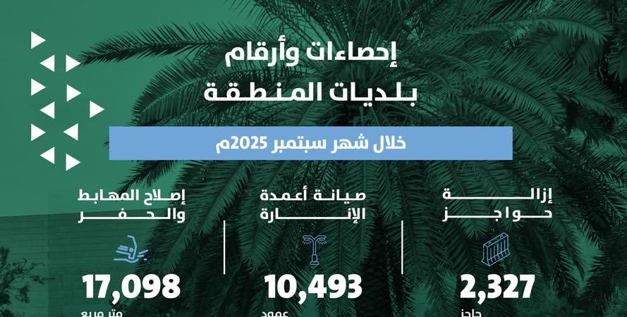 نفذت بلديات الرياض، التابعة لأمانة منطقة الرياض، سلسلة من الأعمال الميدانية خلال شهر سبتمبر 2025، شملت صيانة الشوارع والأرصفة والإنارة والحدائق، إلى جانب أعمال النظافة والامتثال، وذلك في إطار جهود الأمانة المستمرة للارتقاء بكفاءة البنية التحتية وتحسين جودة الخدمات البلدية في مدن ومحافظات المنطقة.