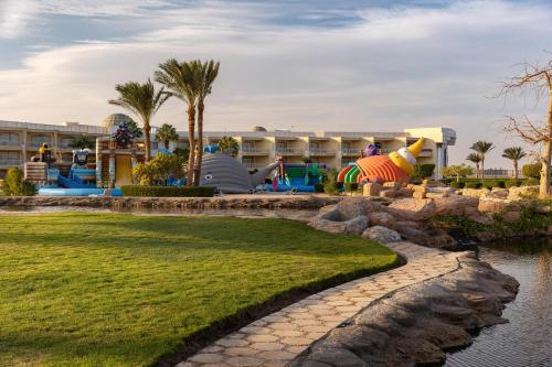 يضم المنتجع ما يزيد عن 445 غرفة وجناحًا، صُمّمت جميعها لتوفّر أقصى درجات الراحة والخصوصية. وتتمتّع الغرف بإطلالات مختلفة على البحر، أو حمامات السباحة، أو الحدائق، مع تجهيزات حديثة تشمل تكييف هواء، تلفزيونات ذكية، ميني بار، وخدمة غرف متوفرة على مدار الساعة.