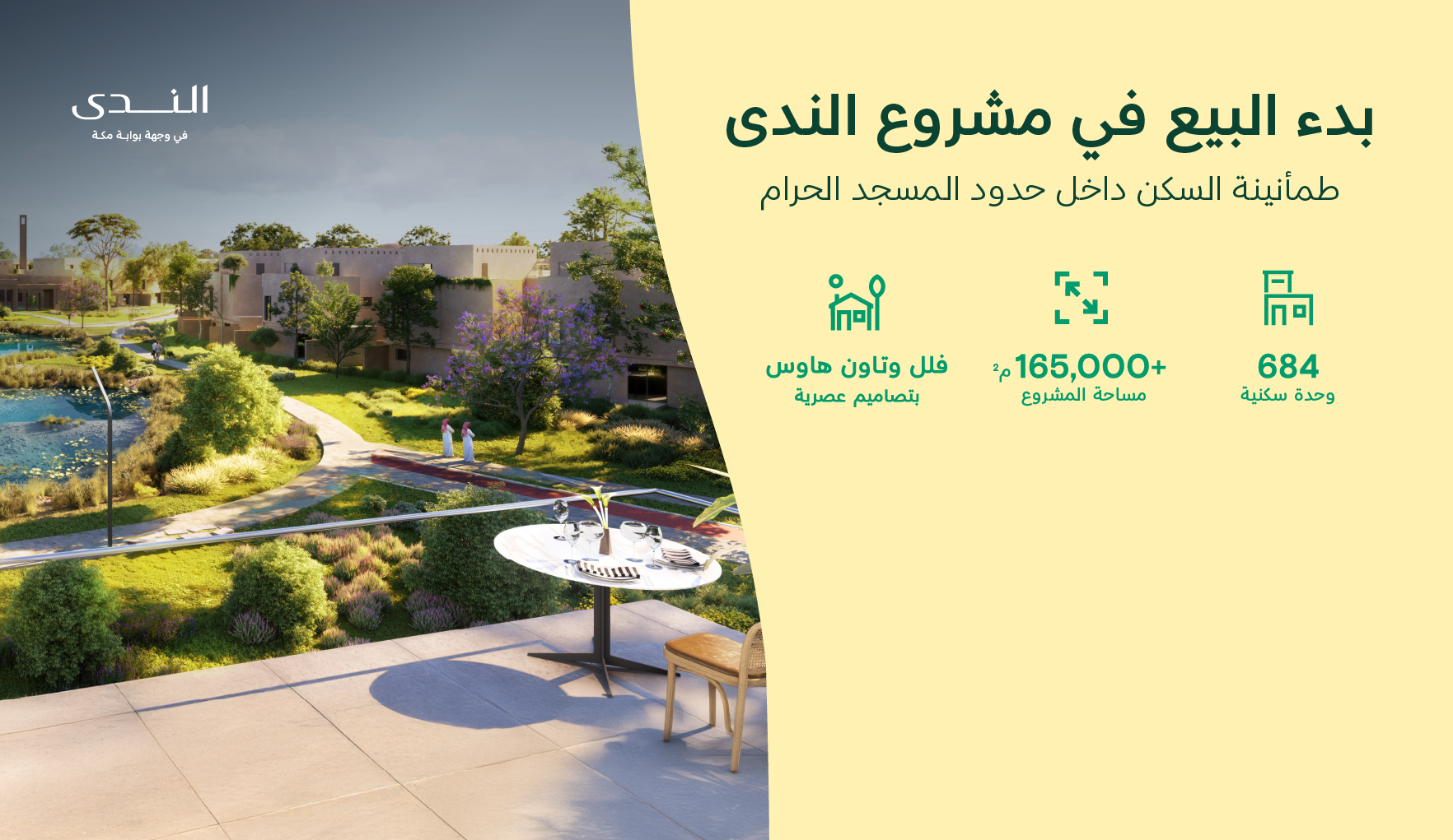 أعلنت الشركة الوطنية للإسكان NHC عن بدء البيع في مشروعها الجديد الندى، أحد المشاريع السكنية المتميزة ضمن وجهة بوابة مكة العمرانية في العاصمة المقدسة. ويأتي هذا المشروع كإضافة نوعية تسهم في الارتقاء بجودة الحياة وتوفير أسلوب عيش متكامل ومتناغم مع احتياجات السكان.