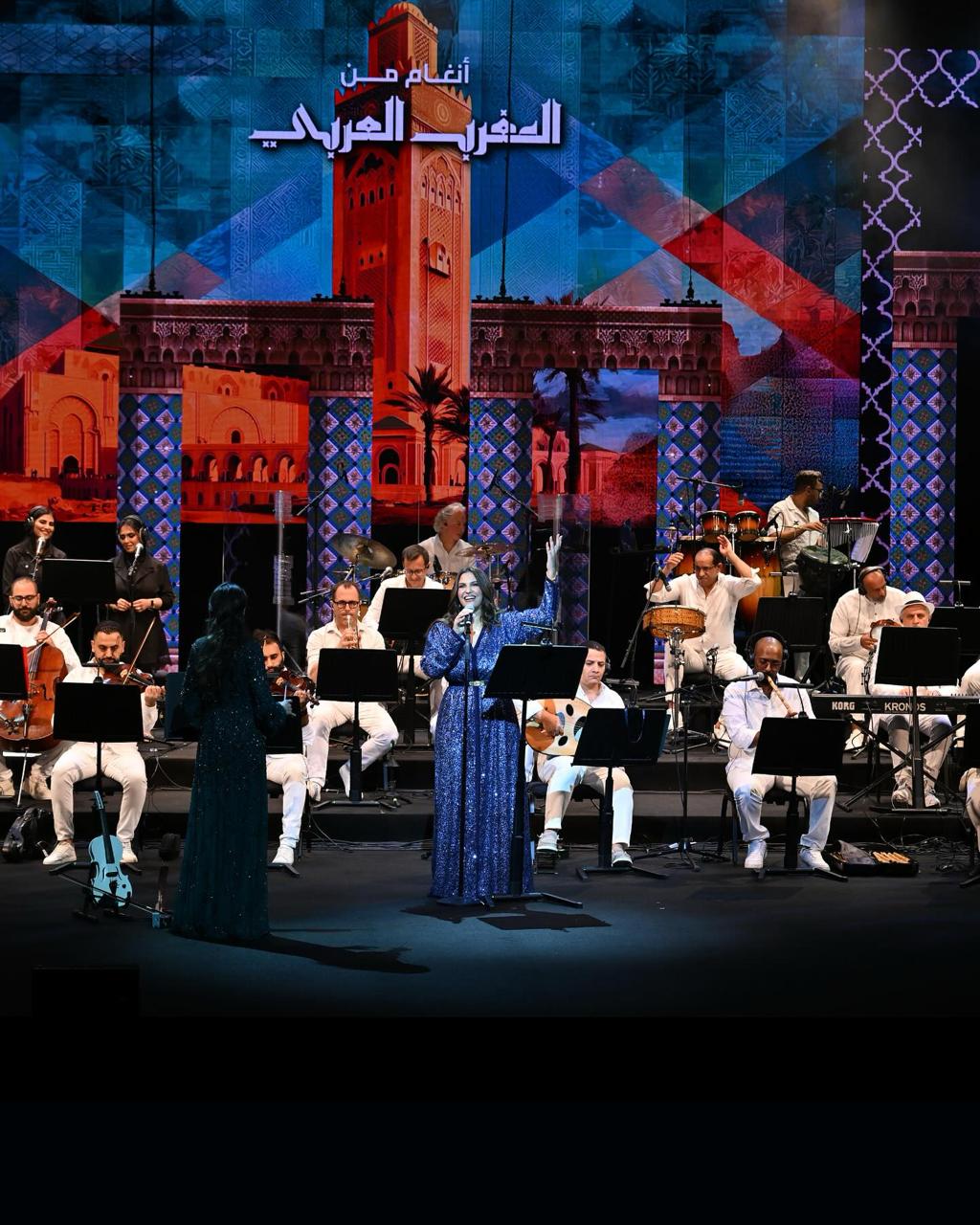 الأمسية التي جاءت ضمن فعاليات “مهرجان الموسيقى الدولي” وتحت إشراف المجلس الوطني للثقافة والفنون، تميّزت بالتنوع والاحتراف، فقد تضمّن البرنامج أعمالاً أُعيد توزيعها خصيصا للأوركسترا، مُستحضِراً أصواتاً ورموزاً من المغرب العربي، من تونس إلى الجزائر فالمغرب، في باقة ألحانٍ تماوجت فيها الأنغام الشعبية مع النفَس السمفوني الراقي. نغمات” قال جاني بعد يومين” (سميرة سعيد) و “عز الحبايب” (صابر الرباعي) و”لولا الملامة” (وردة)، و” وحياتي عندك” (ذكرى) تمايلت مع ألحان “مزيانة” و”يا رايح” و”سيدي منصور” و”علّي جرى” و”بنت بلادي” و”عبد القادر” وغيرها، في مشهدٍ فنيٍ يجمع سحر الشرق العربي بمغربه على أرض الكويت. في هذه الأمسية الاستثنائية، ترافقت الألحان الخالدة، مع أصواتٍ ساحرةٍ، فأبدع الفنان مهدي عياشي بصوته المخملي وحضوره الدافئ، وأبهرت لمياء جمال الجمهور بأداء يجمع بين الشجن والقوة، في تناغمٍ بديعٍ مع الأوركسترا.