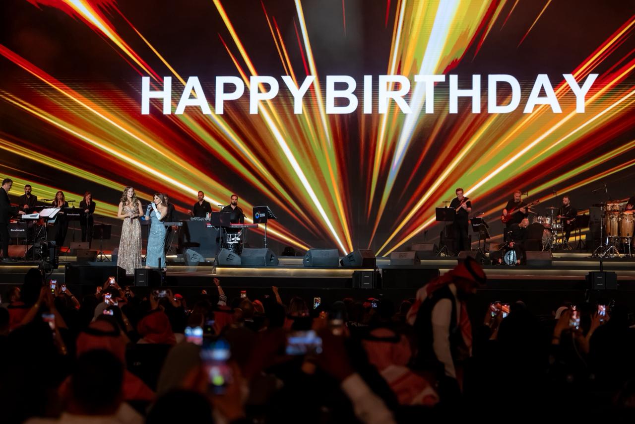 قدمت إليسا باقة من أبرز أغنياتها التي تنوّعت بين الكلاسيكيات التي احبها الجمهور وأحدث أعمالها الغنائية، لتأسر قلوب الحضور بصوتها وأدائها المليء بالإحساس. وفور انتهائها من أداء أغنيتها الأخيرة “حانعيش”، فاجأتها الإعلامية أنابيلا هلال بالصعود إلى المسرح لتهنئتها بمناسبة عيد ميلادها، حيث شاركها جمهور الرياض الغناء في لحظة مؤثرة عبرت فيها إليسا عن سعادتها وشكرها للجمهور.