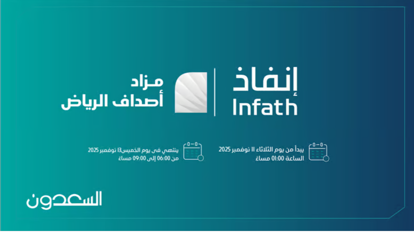 أعلنت شركة السعدون العقارية، وبإشراف مركز الإسناد والتصفية (إنفاذ)، عن إقامة مزاد أصداف الرياض الإلكتروني، والذي يُعقد عبر منصة وصلت للمزادات ابتداءً من الثلاثاء 11 نوفمبر 2025 الساعة 1:00 مساءً وحتى الخميس 13 نوفمبر 2025 الساعة 9:00 مساءً، في خطوة تعزز النشاط العقاري وتشجع الاستثمار في العاصمة الرياض.