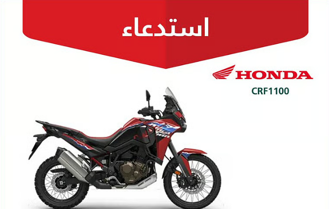 أعلنت وزارة التجارة اليوم الأحد 14 ديسمير عن استدعاء 47 دراجة نارية من طراز هوندا CRF1100، الموديلات 2020 – 2025، وذلك بسبب خلل فني قد يؤثر على سلامة المستخدمين.