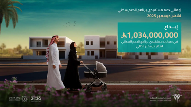 أودع صندوق التنمية العقارية مبلغ 1,034,000,000 ريال سعودي في حسابات مستفيدي برنامج الدعم السكني التابع لوزارة البلديات والإسكان والصندوق العقاري عن شهر ديسمبر 2025م، في خطوة تأتي ضمن الدعم الحكومي المتواصل لقطاع الإسكان في المملكة.