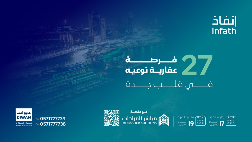 مراسي جدة – أعلنت شركة ديوان العقارية، وبإشراف مركز الإسناد والتصفية “إنفاذ”، عن إقامة مزاد إلكتروني لمشروع مراسي جدة، والمقرر عقده يوم 17 يناير 2026 الساعة 10:00 صباحًا عبر منصة مباشر للمزادات الإلكترونية.