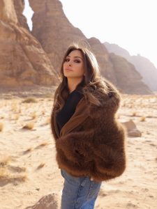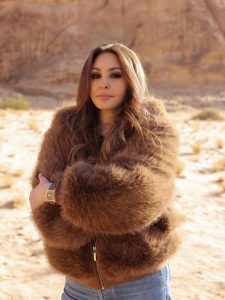وظهرت إليسا وهي ترتدي جاكيت شتوي من الفرو مع بنطلون جينز، في تنسيق بسيط يعكس أناقة هادئة تناسب أجواء العلا الشتوية، حيث بدت منسجمة مع الطبيعة الصحراوية والجبال الحمراء التي تشتهر بها المنطقة.