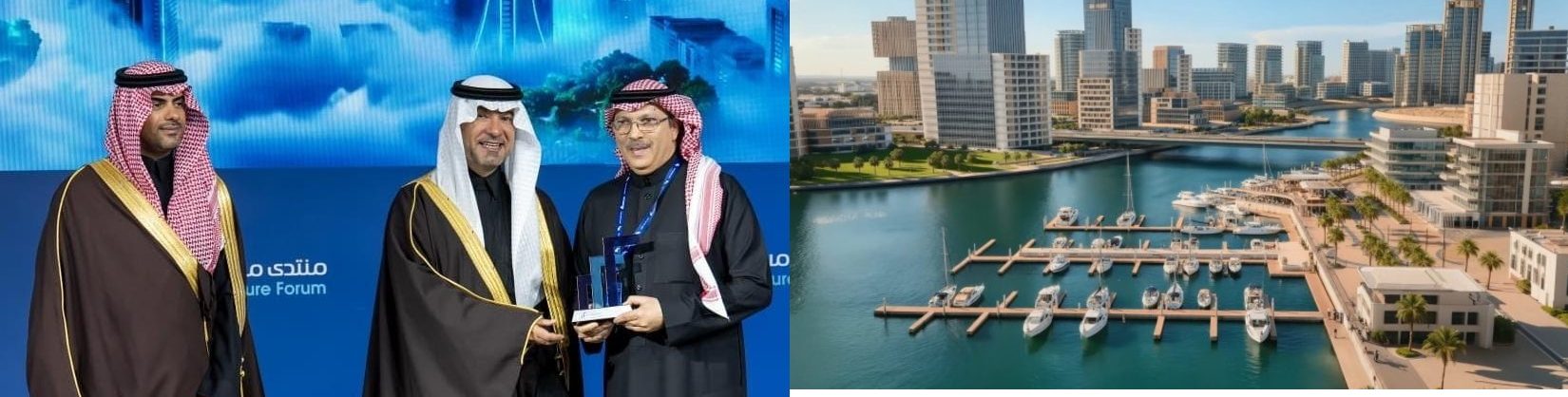 ويمثل الماء العنصر التنظيمي الرئيسي في المخطط، حيث يوجّه استخدامات الأراضي، وأنماط التنقل، والسمات العمرانية، ويسهم في تحسين جودة الحياة في مختلف أرجاء الوجهة.