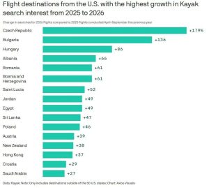 بحسب عمليات البحث على منصة Kayak المتخصصة في السفر، من المتوقع أن يشهد قطاع السياحة موجة جديدة من الاهتمام خلال عام 2026، مع بروز عدد من الوجهات التي تشهد ارتفاعًا ملحوظًا في معدلات البحث والحجز.