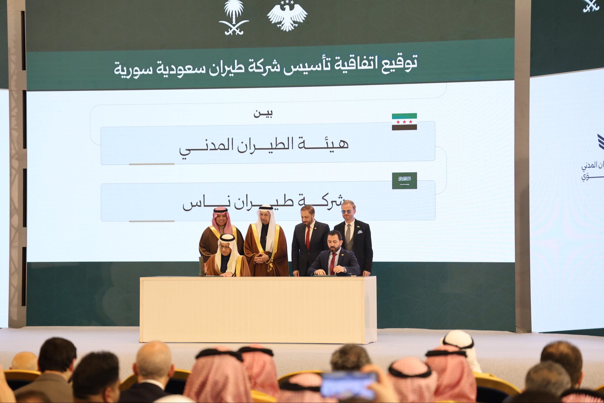 جرت اليوم عدة اتفاقيات استراتيجية بين شركات سعودية وجهات حكومية سورية، شملت تطوير مطاري حلب، وإنشاء شركات مشتركة في مجالات الطيران والكابلات، لتعزيز المشاريع الاستثمارية المشتركة ورفع كفاءة الخدمات والبنية التحتية في مختلف القطاعات.