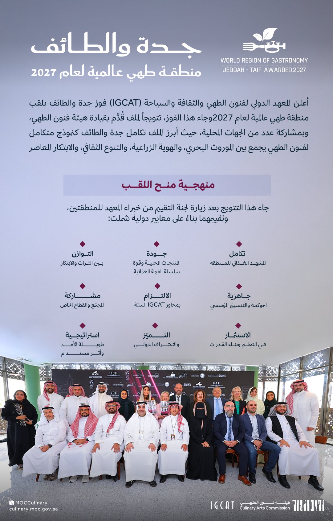 ويمنح هذا اللقب للمناطق التي تستوفي معايير المعهد، والتي تركز على توظيف فنون الطهي كأداة للتنمية الاقتصادية والثقافية والاجتماعية والبيئية، بما يدعم التنمية الإقليمية المستدامة ويعزز الهوية المحلية ويحافظ على التراث الغذائي.