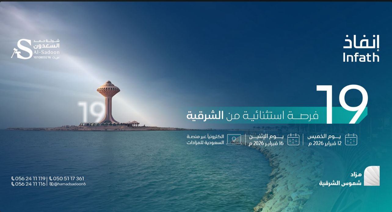 تتميز العقارات المطروحة بقربها من أبرز المشاريع والخدمات النوعية في المنطقة الشرقية، ما يعزز من قيمتها الاستثمارية ويجعلها وجهة استراتيجية مثالية للباحثين عن فرص عقارية متميزة. ويُعد المزاد فرصة جاذبة للراغبين في اقتناص استثمارات واعدة ضمن مواقع حيوية تشهد نموًا متسارعًا.
