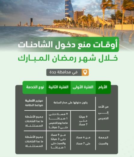 مواعيد منع دخول الشاحنات بجدة والمنطقة الشرقية