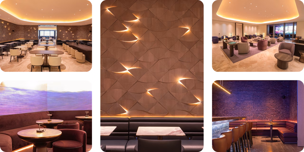 جاء تصميم الصالة بالتعاون مع استوديو Yabu Pushelberg، مع اعتماد خطوط ومساحات مستوحاة من البيئة السعودية في إطار معاصر، إلى جانب نظام إضاءة ديناميكي يتغير على مدار اليوم للحفاظ على أجواء مريحة، بما يعكس توجه الشركة نحو تقديم تجربة متكاملة تجمع بين الطابع السعودي والحلول الحديثة.