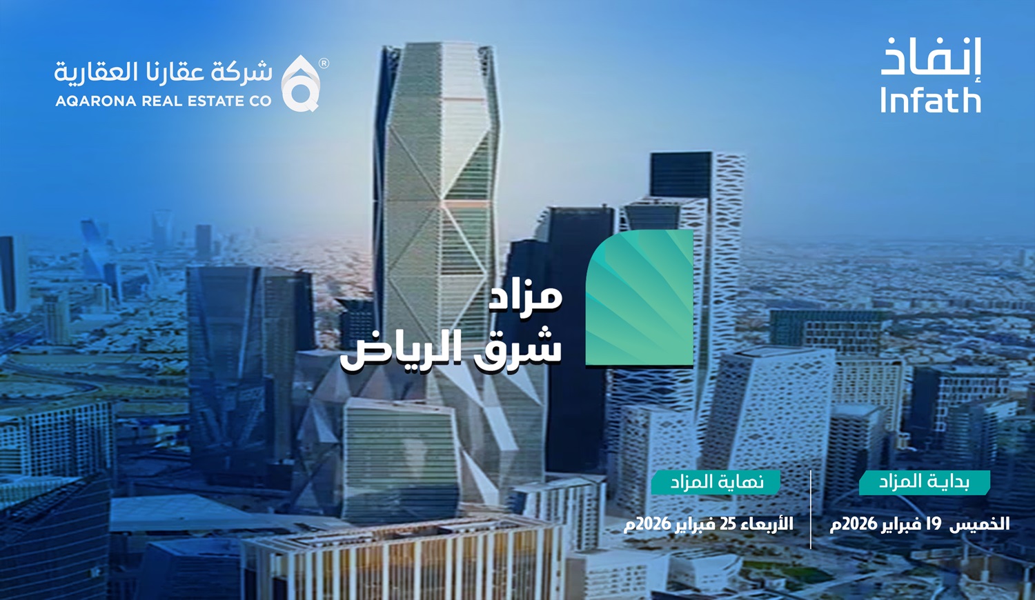 أعلنت شركة عقارنا العقارية، بإشراف مركز الإسناد والتصفية «إنفاذ» وبموجب قرار من محكمة التنفيذ، عن إطلاق مزاد شرق الرياض الإلكتروني، الذي يضم 24 عقارًا موزعة على مواقع حيوية في مدينة الرياض ومحافظة رماح، وذلك عبر منصة مباشر للمزادات.
