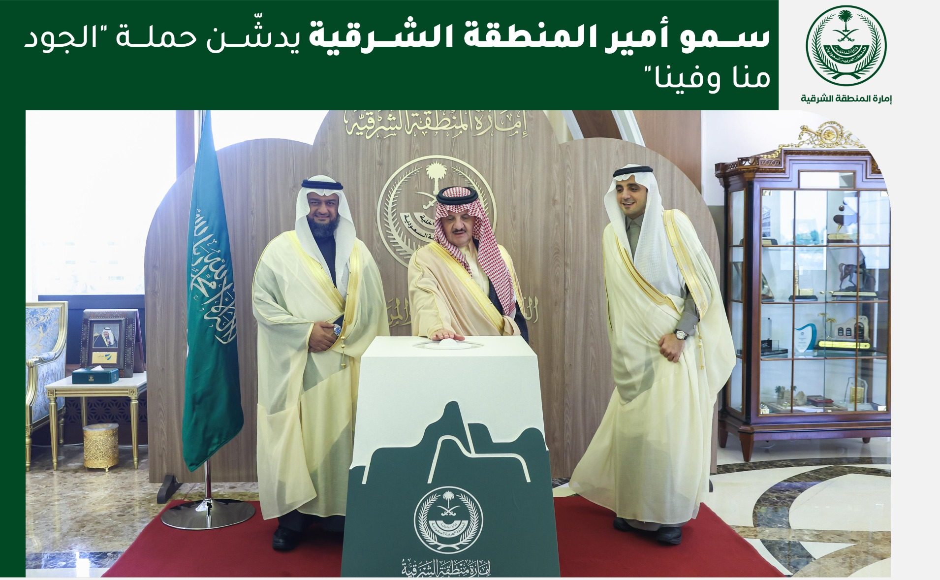 دشّن صاحب السمو الملكي الأمير سعود بن نايف بن عبدالعزيز، أمير المنطقة الشرقية، حملة «الجود منا وفينا»، التي تُعد إحدى مبادرات مؤسسة الإسكان التنموي الأهلية «سكن»، والهادفة إلى توفير مساكن مناسبة للمواطنين المستحقين بسهولة وموثوقية.