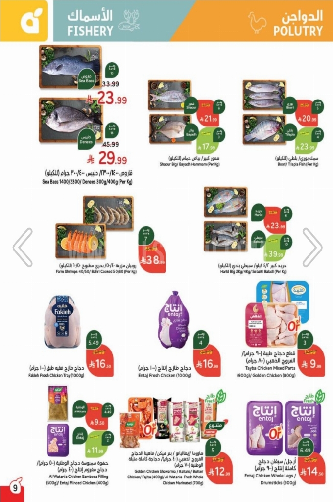 تخفيضات على اللحوم الطازجة والدواجن، بالإضافة إلى عروض على الأسماك.