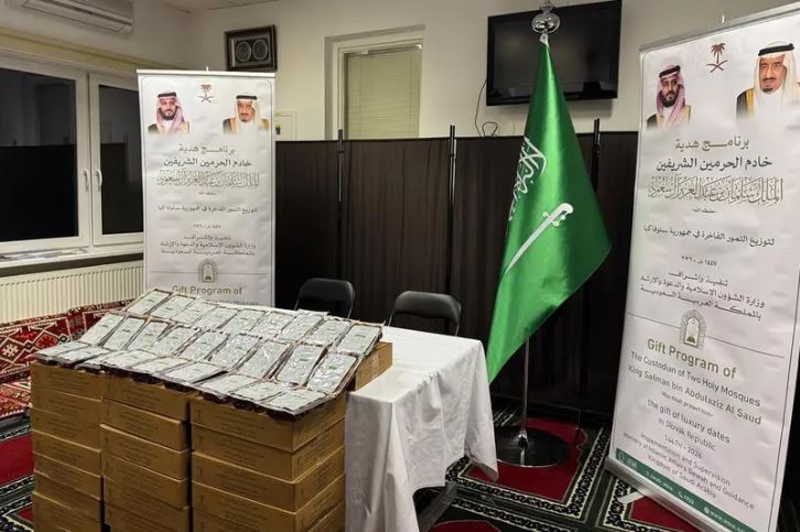 سلمت وزارة الشؤون الإسلامية والدعوة والإرشاد هدية خادم الحرمين الشريفين من التمور الفاخرة للعاصمة السلوفاكية براتيسلافا، وذلك في مسجد قرطبة، حيث بلغت كمية التمور ثلاثة أطنان استفاد منها نحو 12 ألف شخص من الجالية الإسلامية في سلوفاكيا.