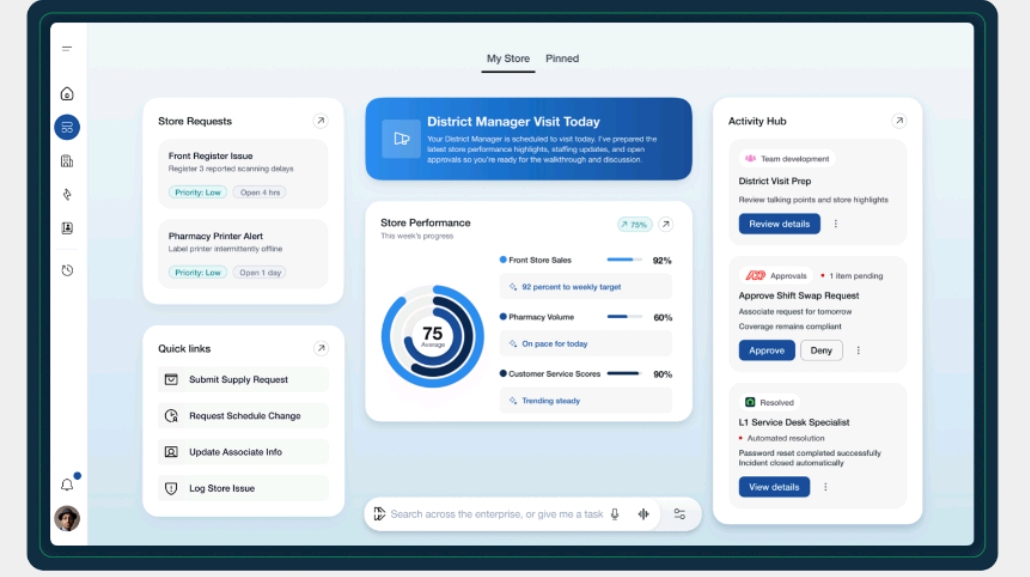 تتميز المنصة الجديدة ServiceNow EmployeeWorks بقدرتها على دمج الذكاء الاصطناعي التخاطبي والبحث المؤسسي من Moveworks مع بوابة سيرفس ناو وسير العمل المستقل، بحيث يتحول أي طلب باللغة الطبيعية إلى إجراءات فعلية منسقة عبر الأنظمة المختلفة.