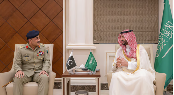 التقى وزير الدفاع السعودي، الأمير خالد بن سلمان، اليوم، قائد قوات الدفاع في باكستان، المشير عاصم منير، في لقاء تناول القضايا الأمنية والاستراتيجية المشتركة بين المملكة وباكستان.