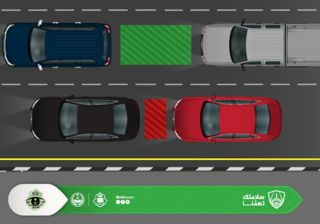 وأوضح المرور أن الحفاظ على مسافة كافية يمنح قائد المركبة الوقت الكافي للتحكم في السيارة واتخاذ الإجراءات السليمة، ما يساعد على تفادي الاصطدام في حال توقف المركبة الأمامية فجأة.