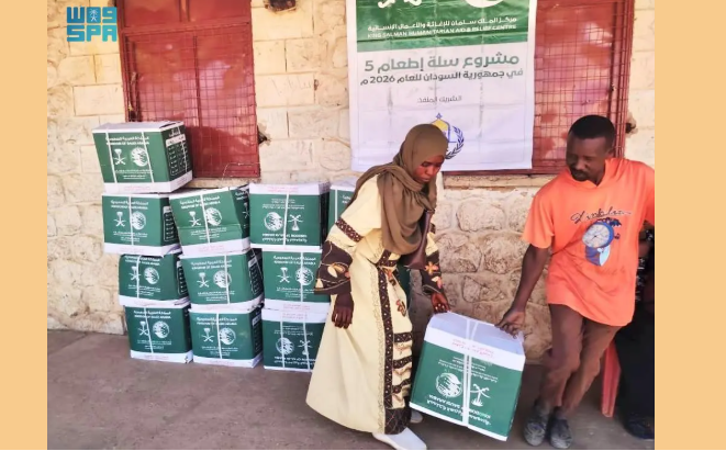 ويأتي هذا التوزيع ضمن مشروع “سلة إطعام” لعام 2026، الذي يهدف إلى توزيع 10 آلاف سلة غذائية على الأسر المحتاجة في البلاد، ليستفيد منها نحو 60 ألف شخص، في إطار الجهود الإنسانية التي تبذلها المملكة لدعم المجتمعات المتضررة حول العالم.